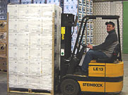 Entladen der Ware vom LKW mit dem Gabelstapler – dabei werden Lieferpapiere gründlich überprüft und mit der Ladung verglichen; bei Vorhanden von einer Werks-, oder Zollplombe wird der komplette Verschluß überprüft ; äußerliche Schäden werden im Frachtbrief vermerkt und dokumentiert.