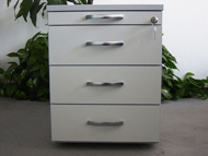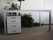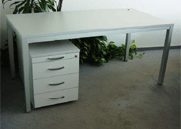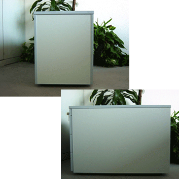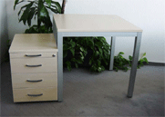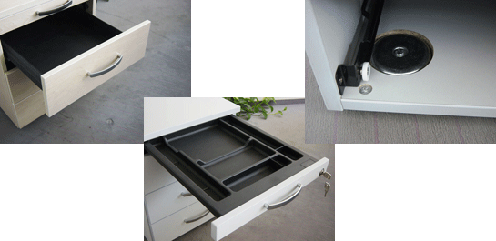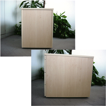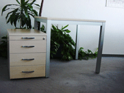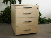 | Der Rollcontainer ist verleimt und zusätzlich mit Exzentrik-Schrauben gesichert. Dadurch erhält man ein Büromöbelstück erhöhter Stabilität das dem harten Alltagseinsatz Stand hält |