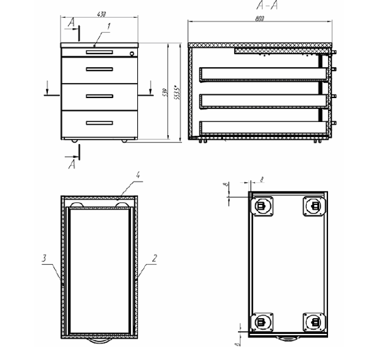 (dadurch ist der Rollcontainer ca. 2,5 cm niedriger)